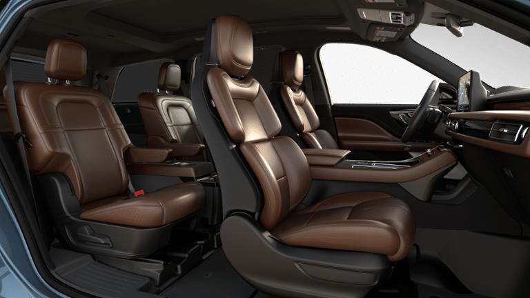 14 Speakers, 30-Way Perfect Position Seats with Active Motion, 3rd row seats: split-bench, 4-Wheel Disc Brakes, 40/Mini Console/40 Dual Captain's Chairs, ABS brakes, Adaptive suspension, Air Conditioning, Alloy wheels, AM/FM radio: SiriusXM, Apple CarPlay/Android Auto, Audio memory, Auto Heated and Ventilated Driver and Passenger Seats, Auto High-beam Headlights, Auto-dimming door mirrors, Auto-dimming Rear-View mirror, Automatic temperature control, Black Exterior Elements, Body-Color Exterior Elements, Brake assist, Bumpers: body-color, Compass, Delay-off headlights, Driver door bin, Driver vanity mirror, Dual front impact airbags, Dual front side impact airbags, Electronic Stability Control, Emergency communication system: 911 Assist, Four wheel independent suspension, Front anti-roll bar, Front Bucket Seats, Front Center Armrest, Front dual zone A/C, Front reading lights, Full Rear Console, Fully automatic headlights, Garage door transmitter, Genuine wood console insert, Genuine wood dashboard insert, Heads-Up Display, Heated and Ventilated Rear Seats, Heated door mirrors, Heated front seats, Heated steering wheel, HVAC memory, Illuminated entry, Jet Appearance Package, Knee airbag, Leather steering wheel, Lincoln App, Lincoln BlueCruise Equipped (4-Years Included), Lincoln Connectivity Package (4-Years), Lincoln Digital Experience, Low tire pressure warning, Luxury Package, Memory seat, Navigation system: Google Maps, Occupant sensing airbag, Outside temperature display, Overhead airbag, Overhead console, Panic alarm, Passenger door bin, Passenger vanity mirror, Power door mirrors, Power driver seat, Power Liftgate, Power moonroof: Panoramic Vista Roof, Power passenger seat, Power steering, Power windows, Premium Leather Front Captain's Chairs, Radio data system, Radio: Revel Audio System with 14 Speakers, Radio: Revel Ultima 3D Audio System with 28 Speakers, Rain sensing wipers, Rear air conditioning, Rear anti-roll bar, Rear audio controls, Rear dual zone A/C, Rear reading lights, Rear window defroster, Rear window wiper, Remote keyless entry, Security system, SiriusXM, Speed control, Speed-Sensitive Wipers, Split folding rear seat, Spoiler, Steering wheel memory, Steering wheel mounted A/C controls, Steering wheel mounted audio controls, Tachometer, Telescoping steering wheel, Tilt steering wheel, Traction control, Trip computer, Turn signal indicator mirrors, Variably intermittent wipers, Ventilated front seats, Wheels: 21 Bright-Machined Aluminum with Dark Alloy Painted Pockets, Wheels: 22 Black Aluminum, Wireless Charging Pad.