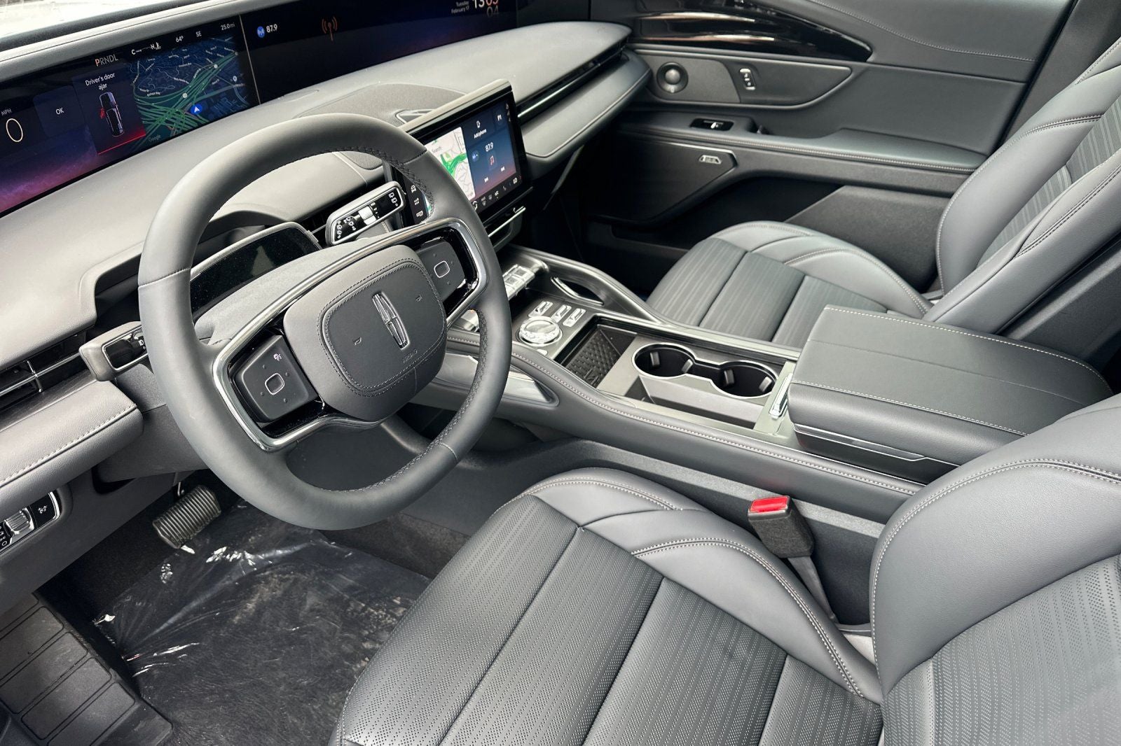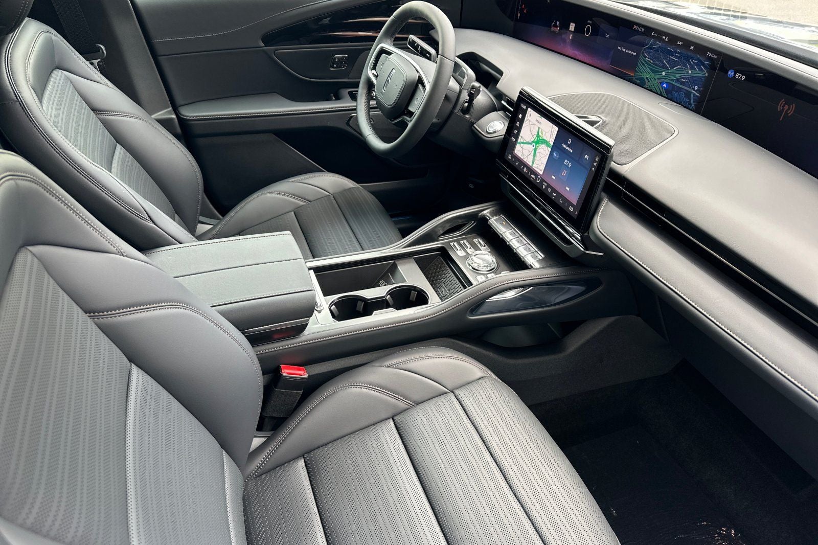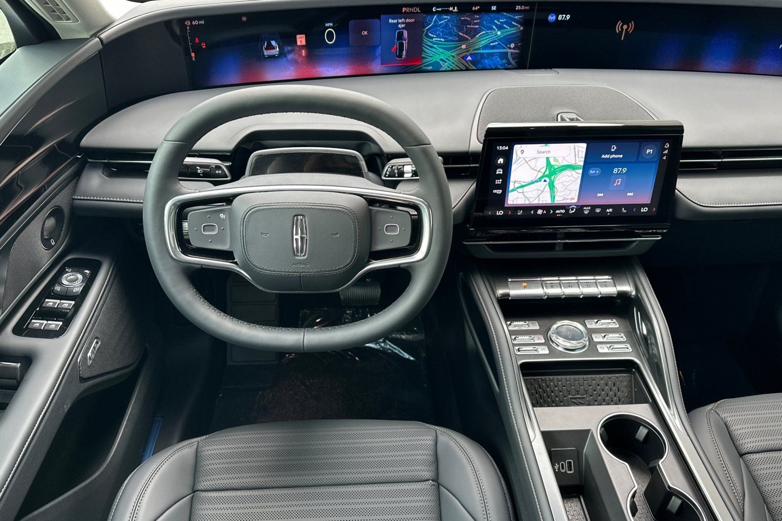2.0L GTDI FHEV, 10 Speakers, 110V Power Converter, 4-Wheel Disc Brakes, ABS brakes, Adaptive suspension, Air Conditioning, Alloy wheels, AM/FM radio: SiriusXM with 360L, Apple CarPlay/Android Auto, Auto Air Refresh, Auto High-beam Headlights, Auto tilt-away steering wheel, Auto-dimming Rear-View mirror, Automatic temperature control, Black Exterior Elements, BlueCruise Equipped (4-Years Included), Body-Color Exterior Elements, Brake assist, Bumpers: body-color, Compass, Delay-off headlights, Digital Scent, Driver door bin, Driver vanity mirror, Dual front impact airbags, Dual front side impact airbags, Electronic Stability Control, Emergency communication system: 911 Assist, Equipment Group 202A Reserve II, Exterior Parking Camera Rear, Four wheel independent suspension, Front anti-roll bar, Front Bucket Seats, Front Center Armrest w/Storage, Front dual zone A/C, Front reading lights, Fully automatic headlights, Garage door transmitter, Hands-Free Power Liftgate, Heated door mirrors, Heated front seats, Heated steering wheel, Illuminated entry, Jet Appearance Package, Knee airbag, Leather steering wheel, Lincoln Connectivity Package, Lincoln Digital Experience, Low tire pressure warning, Memory seat, Navigation System, Occupant sensing airbag, Outside temperature display, Overhead airbag, Overhead console, Panic alarm, Panoramic Vista Roof with Powershade, Passenger door bin, Passenger vanity mirror, Power door mirrors, Power driver seat, Power Liftgate, Power passenger seat, Power steering, Power windows, Premium Leather Trimmed Captain's Chairs, Radio data system, Radio: AM/FM Revel Audio System, Rain sensing wipers, Rear anti-roll bar, Rear Heated Seats with Switch Control, Rear reading lights, Rear seat center armrest, Rear window defroster, Rear window wiper, Remote keyless entry, Security system, SiriusXM with 360L, Speed control, Speed-sensing steering, Speed-Sensitive Wipers, Split folding rear seat, Spoiler, Steering wheel memory, Steering wheel mounted audio controls, Tachometer, Telescoping steering wheel, Tilt steering wheel, Traction control, Trip computer, Turn signal indicator mirrors, Variably intermittent wipers, Ventilated front seats, Wheels: : 22 Satin Dark Luster Aluminum, 2.0L GTDI FHEV. 30/31 City/Highway MPG