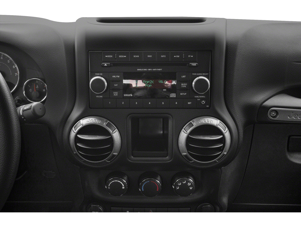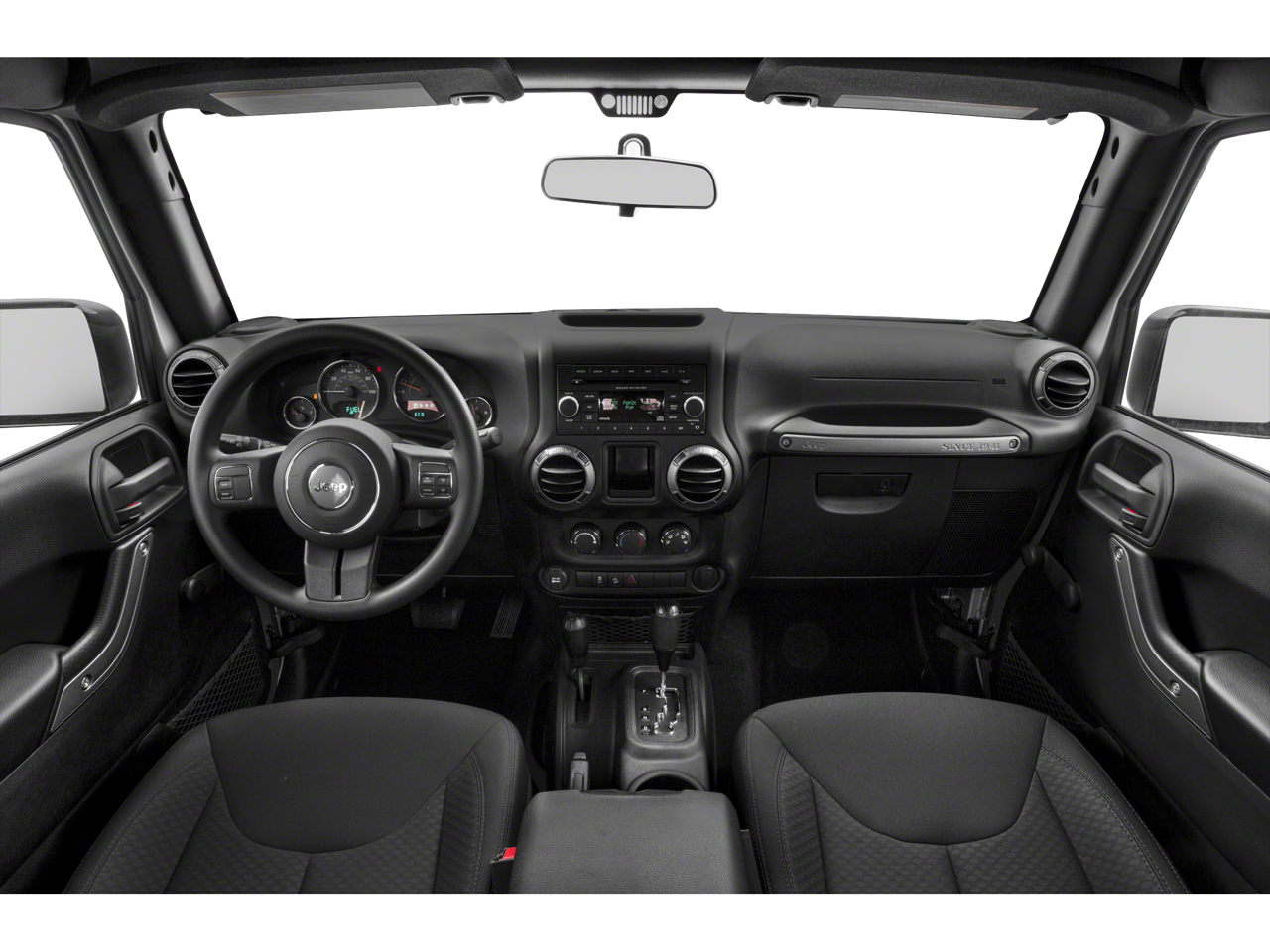 17 x 7.5 Aluminum Wheels, 3.21 Rear Axle Ratio, 4-Wheel Disc Brakes, 8 Speakers, ABS brakes, Air Conditioning, AM/FM radio, Audio Jack Input for Mobile Devices, Auto-Dimming Mirror w/Reading Lamp, Brake assist, CD player, Cloth Seats w/Adjustable Head Restraints, Compass, Connectivity Group, Dual front impact airbags, Electronic Stability Control, Front 1-Touch Down Power Windows, Front anti-roll bar, Front Bucket Seats, Front Center Armrest w/Storage, Front fog lights, Integrated roll-over protection, Leather Wrapped Steering Wheel, Low tire pressure warning, Normal Duty Suspension, Occupant sensing airbag, Outside temperature display, Passenger door bin, Power Convenience Group, Power Heated Mirrors, Power Locks, Quick Order Package 23S, Radio: 130, Rear anti-roll bar, Remote Keyless Entry, Remote USB Port, Security Alarm, Speed control, Steering wheel mounted audio controls, Sunrider Soft Top, Tachometer, Tilt steering wheel, Tire Pressure Monitoring Display, Traction control, Trip computer, Uconnect Voice Command w/Bluetooth®, Variably intermittent wipers, Vehicle Information Center. Odometer is 18972 miles below market average!