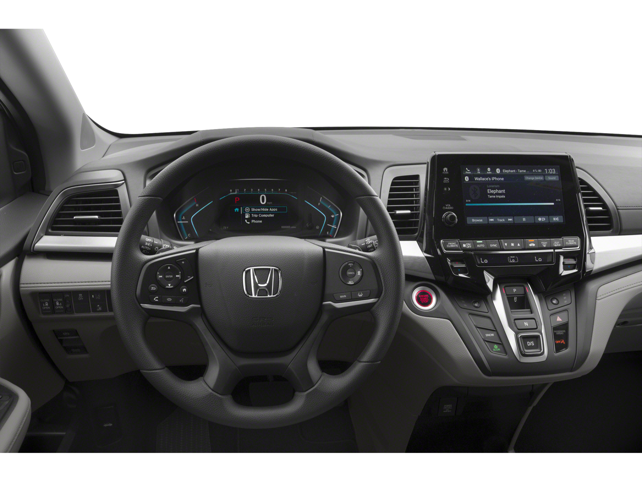 - Radio: 160-Watt AM/FM/HD/SiriusXM Audio System -inc: 6 speakers, subwoofer, multi-zone audio, Bluetooth® HandsFreeLink, Bluetooth® streaming audio, MP3/auxiliary input jack, radio data system (RDS), SMS text message function, 2.5-amp USB audio interface port in front, 2.5-amp USB charging port in center console, CabinControl remote compatibility, 8" display audio w/high-resolution (720P) electrostatic touch-screen and customizable feature settings, Apple CarPlay/Android Auto, illuminated steering wheel-mounted audio controls and black fin-type roof-mounted antenna