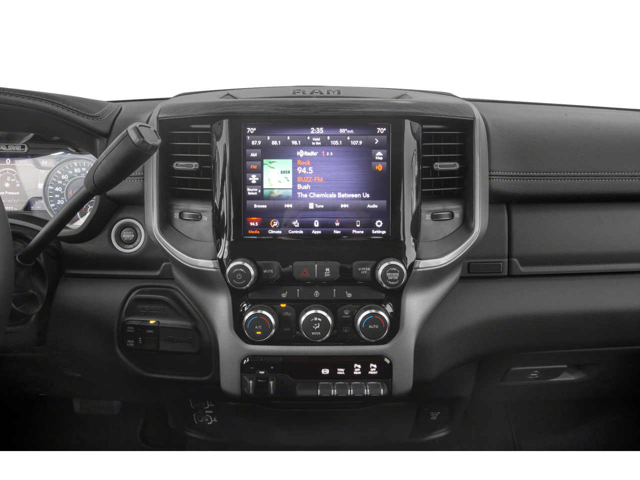 LIFTED, METHOD WHEELS W/ OFF ROAD TIRES, 1-Year SiriusXM Guardian Trial, 12 Touchscreen Display, 17 Speaker harman kardon Premium Sound, 2nd Row In Floor Storage Bins, 4G LTE Wi-Fi Hot Spot, 5-Year SiriusXM Traffic Service, 5-Year SiriusXM Travel Link Service, 8.4 Touchscreen Display, Apple CarPlay, Apple CarPlay/Android Auto, Auto High Beam Headlamp Control, Auto-dimming Rear-View mirror, Black Exterior Mirrors, Black Exterior Truck Badging, Black Headlamp Bezels, Black Interior Accents, Black Ram Head Tailgate Badge, Black Tail Lamp Bezels, Body Color Door Handles, Body Color Grille Surround, Disassociated Touchscreen Display, Exterior Mirrors w/Memory, Foam Bottle Insert (Door Trim Panel), For Details Visit DriveUconnect.com, Garage door transmitter, Gloss Black Grille Billets/Accents, Google Android Auto, GPS Antenna Input, HD Radio, Heated Front Seats, Heated front seats, Heated Second Row Seats, Illuminated entry, Integrated Center Stack Radio, Integrated Voice Command w/Bluetooth®, Laramie Level B Equipment Group, Leather Trim 40/20/40 Bench Seat, Mirror-Mounted Aux Reverse Lamps, Night Edition, Painted Front Bumper, Painted Rear Bumper, ParkView Rear Back-Up Camera, Power Adjust 8-Way Driver Seat, Power Adjust 8-Way Front Passenger Seat, Power Adjustable Convex Aux Mirrors, Power Adjustable Pedals w/Memory, Power Black Tow Mirrors w/Convex Spotter & Memory, Power Chrome Tow Mirrors w/Convex Spotter & Memory, Power passenger seat, Quick Order Package 2HH Laramie, Radio: Uconnect 12.0 w/Navigation, Radio: Uconnect 4 w/8.4 Display, Radio: Uconnect 4C Nav w/8.4 Display, Radio/Driver Seat/Mirrors/Pedals Memory, Rain Sensitive Windshield Wipers, Remote Tailgate Release, SiriusXM Satellite Radio, SiriusXM Traffic Plus, SiriusXM Travel Link, SiriusXM w/360L, Ventilated Front Seats.