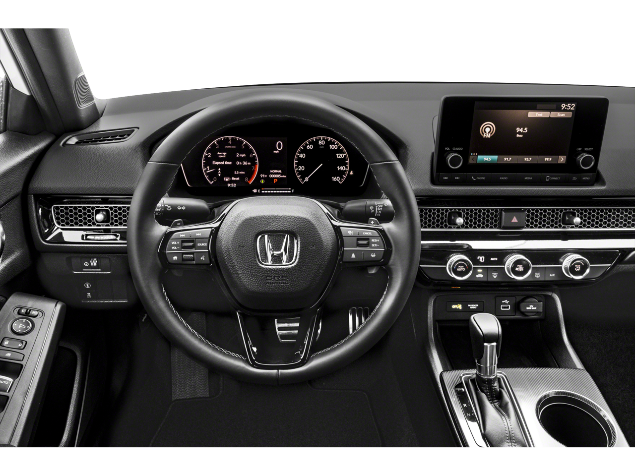 Black w/Cloth/Leatherette Seating Surfaces, Adaptive Cruise Control: Adaptive Cruise Control (ACC) with Low-Speed Follow, Apple CarPlay/Android Auto, Auto High-beam Headlights, Automatic temperature control, Brake assist, Electronic Stability Control, Emergency communication system: HondaLink, Exterior Parking Camera Rear, Fully automatic headlights, Radio: 180-Watt Audio System, Remote keyless entry, Steering wheel mounted audio controls, Wheels: 18 Gloss Black Alloy. 30/37 City/Highway MPG