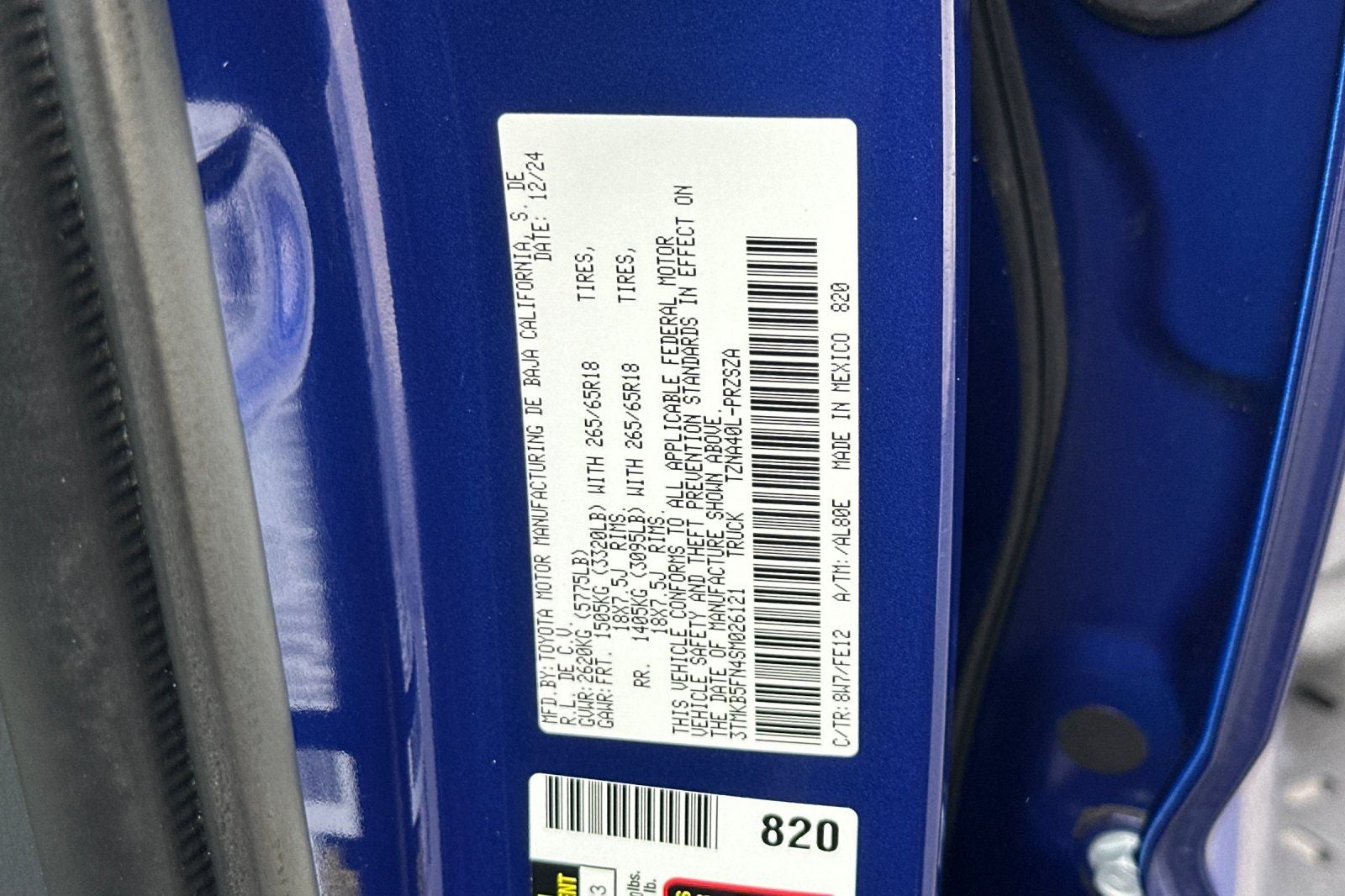 - Vehicle Name: Toyota Tacoma 2WD